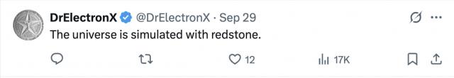 也难怪网友说宇宙是红石模拟出来的。