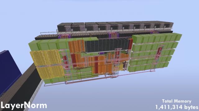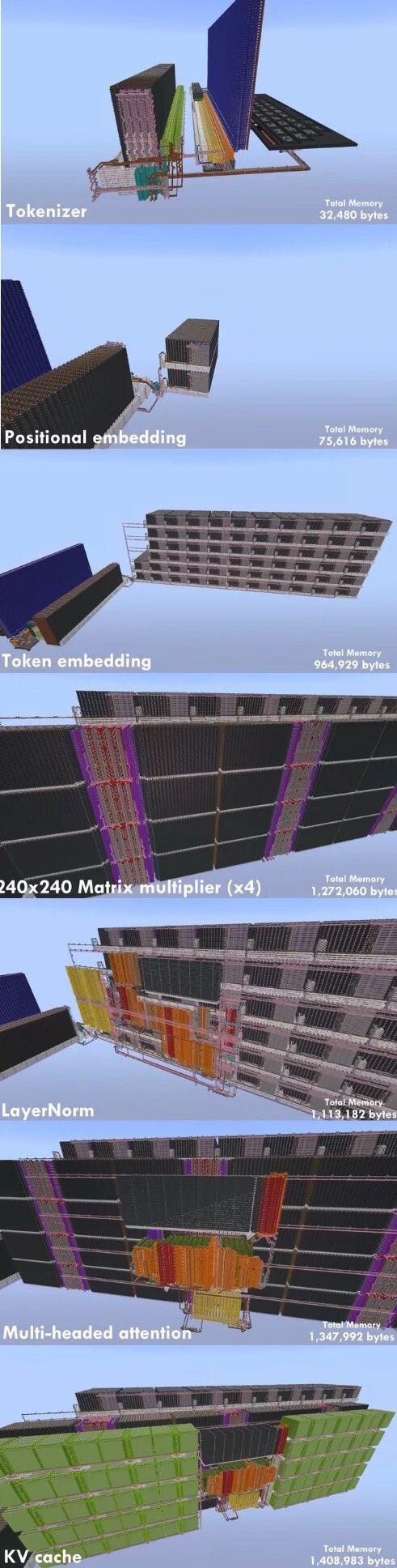 而且手搓这么一个 GPT 竟然没用指令集,完全是用红石电路(0/1)和存储单元手搓出来的。