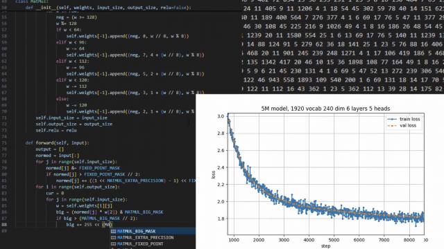 首先,在自己的电脑上训练一个小型 GPT,把权重压缩到低精度(int8、int4,或者 0 – 15 的模拟值),并导出权重和网络结构(NumPy 数组等)。