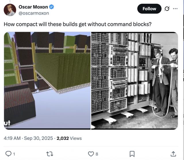 这意味着,《我的世界》的玩家不仅在搭积木,更在进行一场微型的数字计算实验,从 0/1 的基础信号,一步步搭建出完整的运算系统。