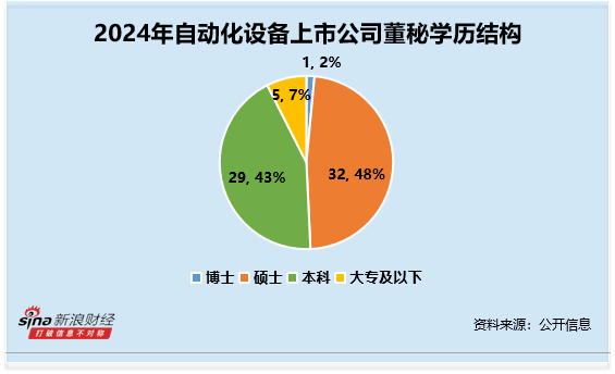 从学历分布来看,博士、硕士、本科、大专及以下分别为1人、32人、29人及5人,对应平均薪酬分别为85.73万元、93.07万元、57.24万元及66.61万元。雷赛智能向少华为博士学历,2024年薪酬为85.73万元。常辅股份许旭华为中专学历,2024年薪酬为59.18万元。