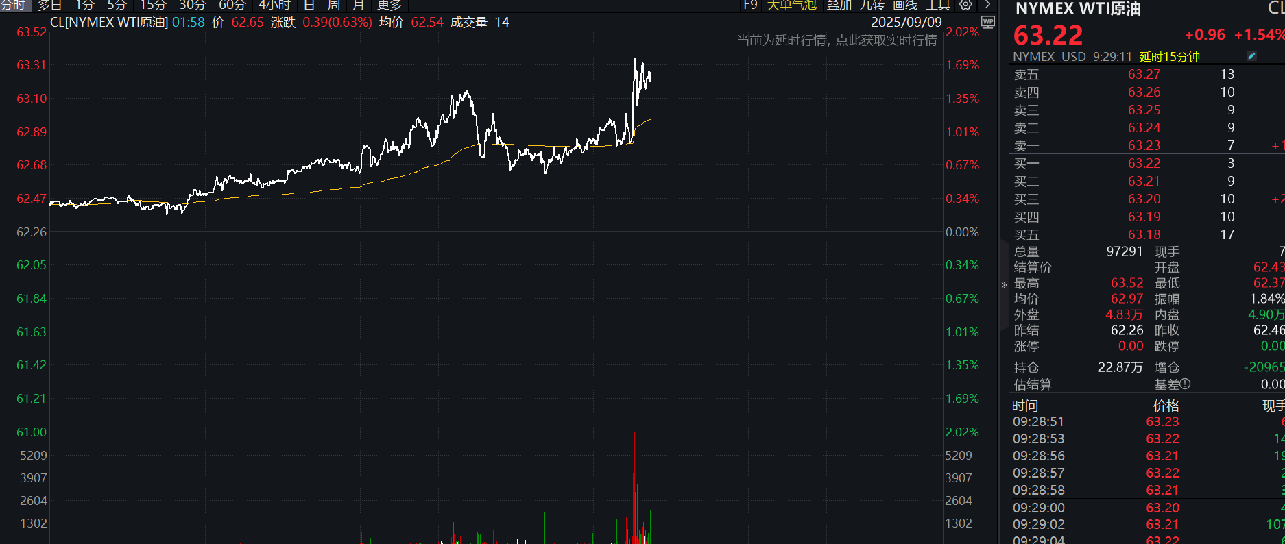 受此影响,国际油价短线拉升,布油、WTI原油均涨超1%。